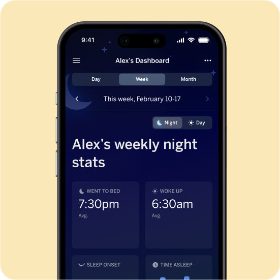 Start monitoring sleep data on day one for robust insights that help you better understand your baby’s development over time.